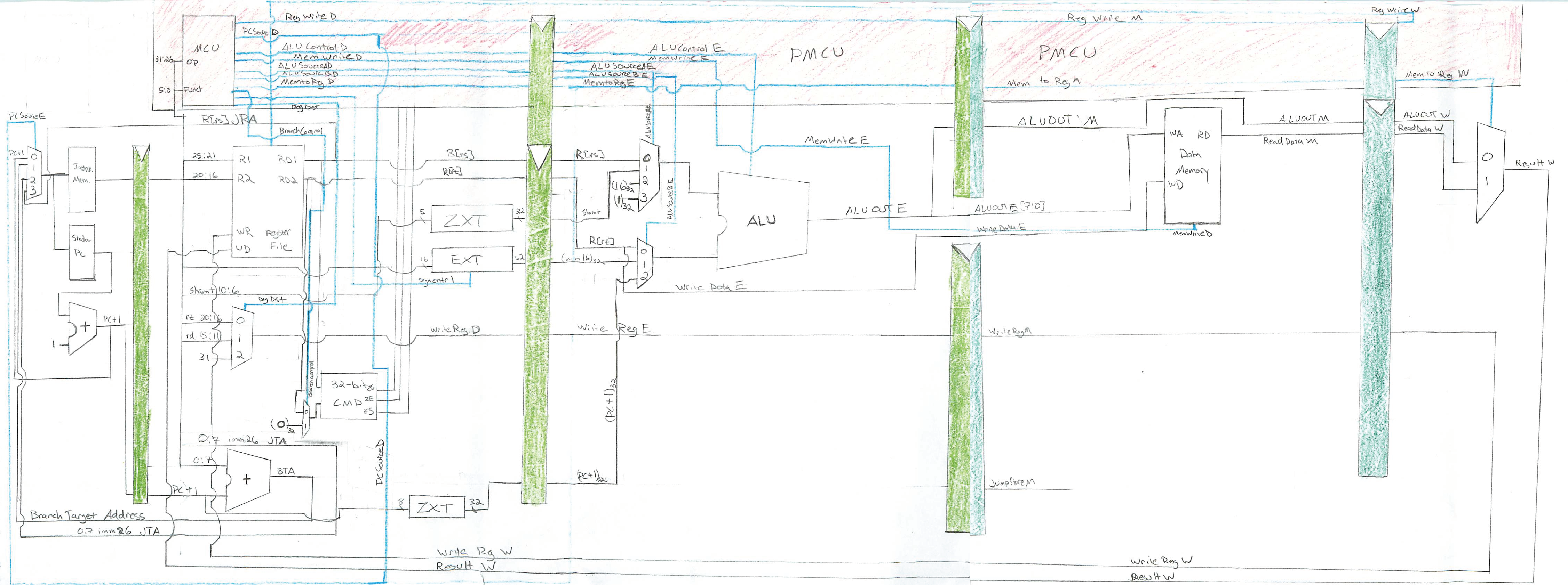 We were taught how to design and build all the components of a computers, chief among them the CPU. We designed a five-stage pipeline RISC processor that was a MIPS variant, with 32 instructions. The hand drawn schematic for the CPU we built in class is attached above. It even ran programs, albeit very simple programs – think, add these two numbers and then subtract the result by three. The fact of the matter is at some point everything we do in a computer is basically broken down to simple operations like that, which still amazes me today. I say this as I type away at this silver slab and words magically appear on a screen while I listen to music coming out of the same silver slab. Of course it’s not magic. It’s just awesome engineering and science.