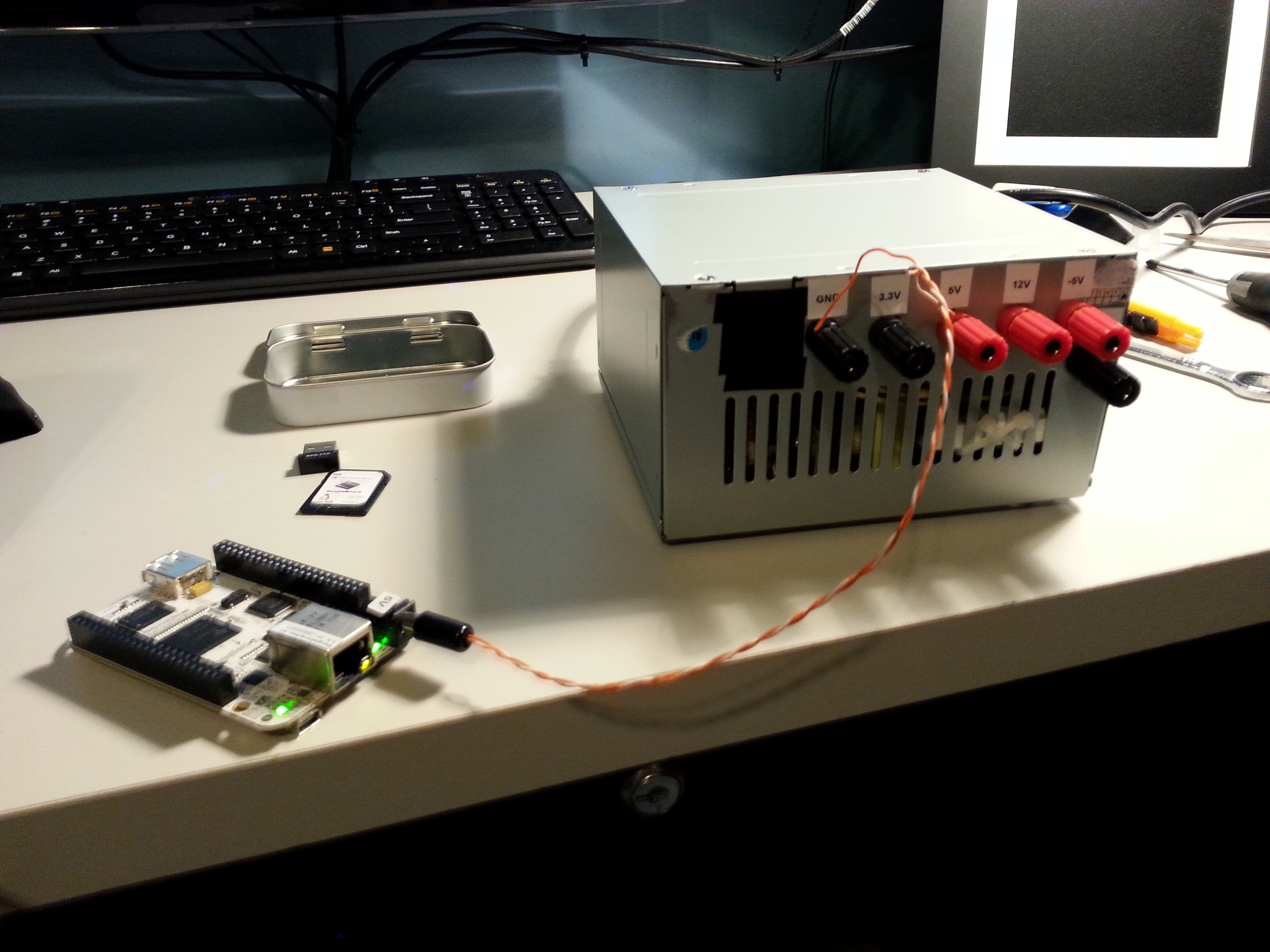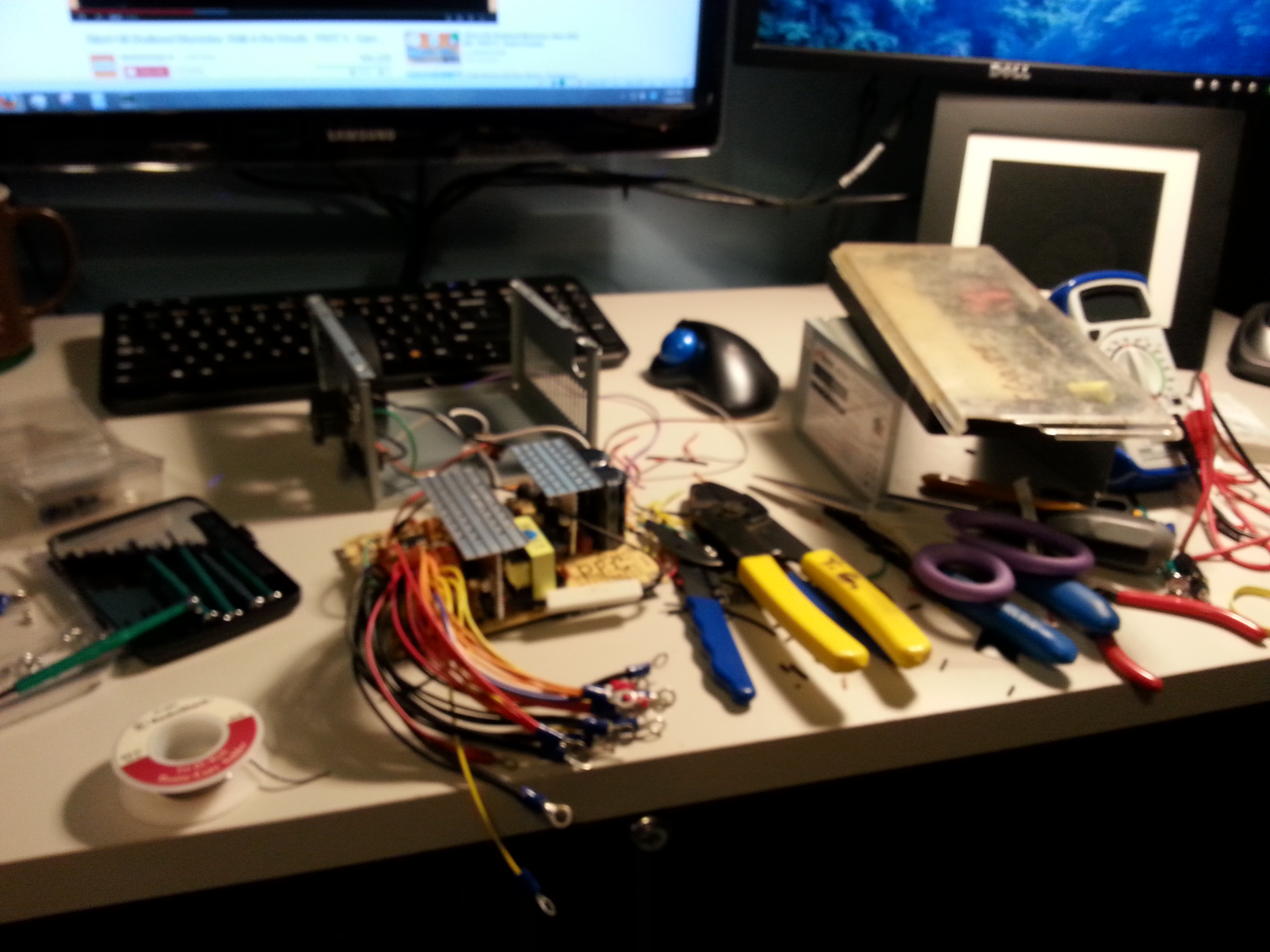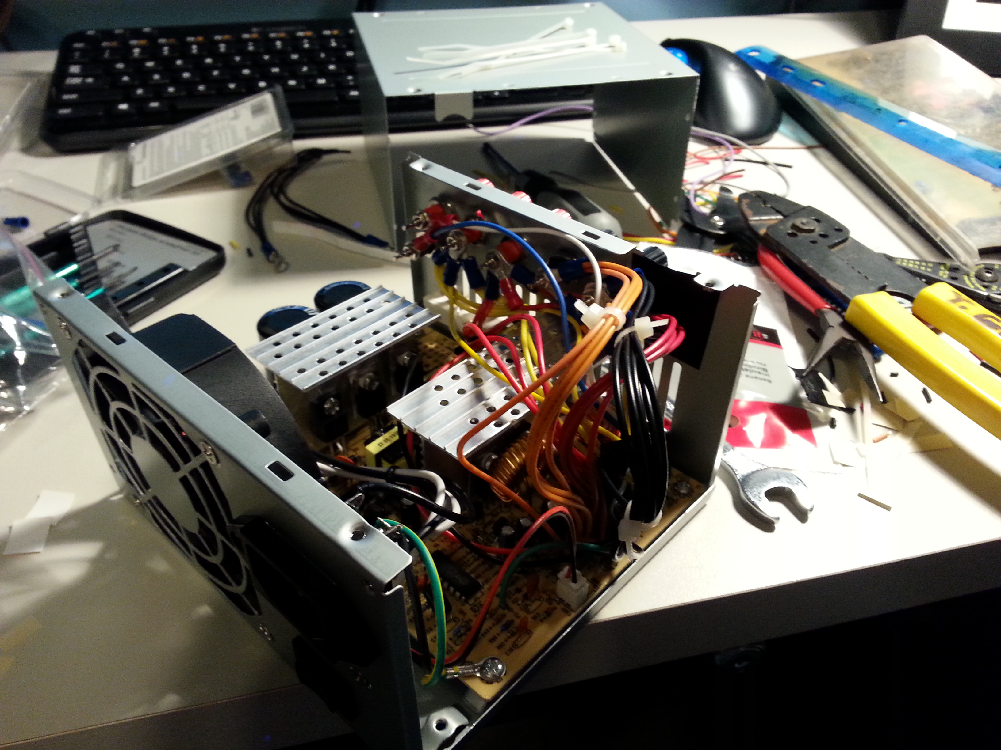 Just a quick, little update. As we have been working on our robot, we have needed a good source of DC power in various voltages. Campus labs have pretty nice variable supplies, but we can’t always be on campus. DC supplies tend to be a little pricey, so David and I decided to convert an ATX PC power supply to a usable bench supply. This is my personal one, and I followed these links to do it. It turned out great and cost me fractions of what a normal supply would.